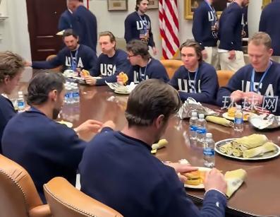 美国独立记者尼克·索托(Nick Sortor)25日在社交媒体上发文并分享视频:特朗普在白宫 为美国队准备了麦当劳,送来了堆积如山的双层芝士汉堡,背景音乐还播放着爱国歌曲。